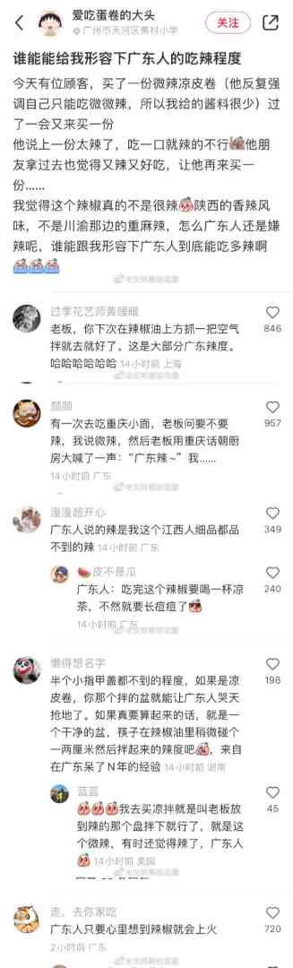 广东人吃辣的程度。