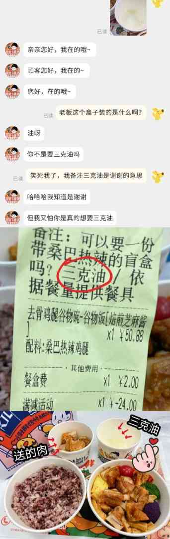 结果真的收到了三克油。